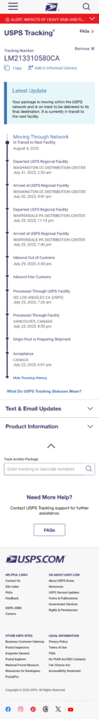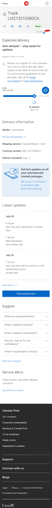 Here aare the tracking details for the letter, with tracking ID LM213310580CA, directly from the official website: